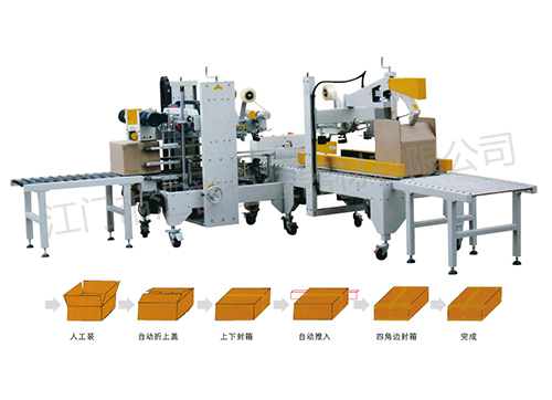 ☆自動折蓋封箱機(jī)與自動四角邊封箱機聯(lián)機(jī)配套組合成自動“H”型封箱